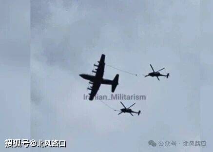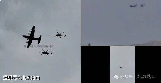 随后,伊朗媒体还公布美军1架C-130运输机正在使用软管为两架“黑鹰”直升机同时进行空中加油,这正是战斗搜救(CSAR)深度渗透行动的典型配置。