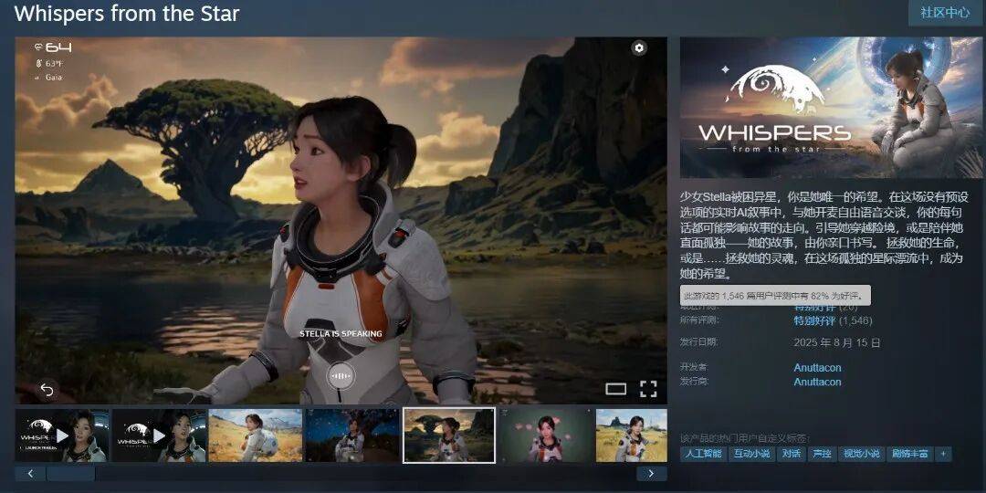 但《星之低语》即使在背靠蔡浩宇,拥有最好的技术和资金支持的情况下,所展现的质量和影响力仍然不尽如人意,也并没有在AI游戏领域翻出多大的浪花。