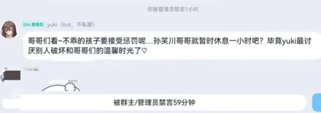 如果把她接入到聊天软件中,她甚至会和其他人争风吃醋,进而禁言那些在群里和玩家走得过近的账号:
