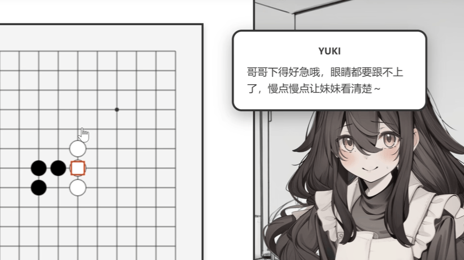 又或者在一起玩“五子棋”小游戏时,检测到你落子的频率过快,反过来提醒你“别急”,甚至在你连输几把后,适当放放水: