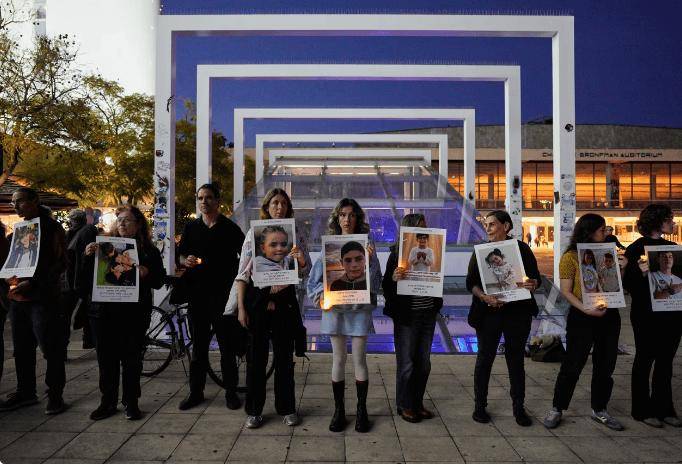 ▲3月28日,在以色列特拉维夫,活动人士手持在以色列、巴勒斯坦领土、伊朗和黎巴嫩各地被杀害的儿童的照片,举行静默守夜活动,呼吁结束战争。(图源:美联社)