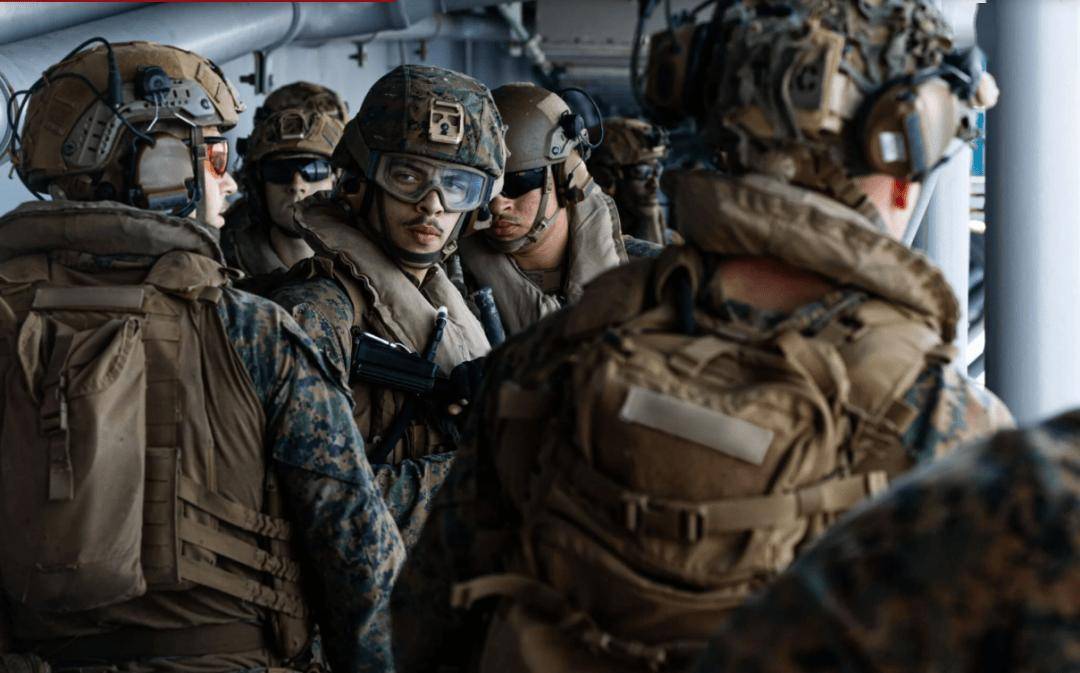 ▲3月27日,美国海军陆战队第31远征部队成员搭乘“的黎波里”号两栖攻击舰抵达美国中央司令部责任区(图源:美国中央司令部)