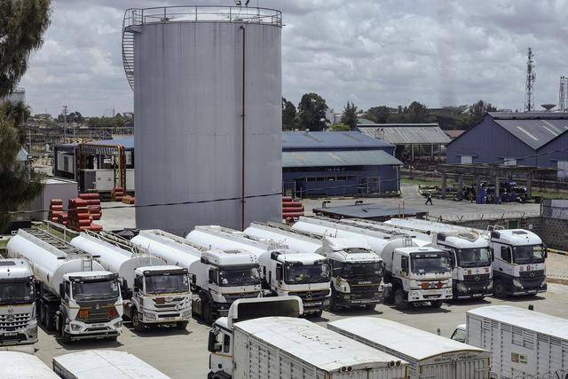 图 | 肯尼亚内罗毕工业区,Vivo能源公司油库前排队等待补给的油罐车