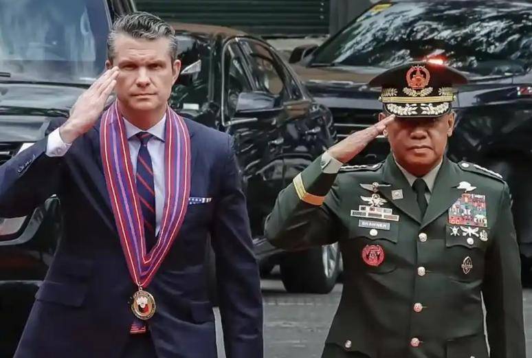 2025年3月24日,赫格塞思开始了他任期内的第一次亚太之行。从行程安排来看,这次访问颇具深意——他直接跳过了韩国,先飞往夏威夷与印太司令部指挥官会面,接着再去关岛视察美军设施。此次访问的首站选择了菲律宾。3月28日,赫格塞思抵达马尼拉,并在与菲律宾总统马科斯会面前,公开宣称美菲联盟坚如磐石。他还特别将南海称之为西菲律宾海,并透露美国将在菲律宾追加部署远征舰艇拦截系统以及高性能的无人水面艇。正当他抵达菲律宾的同一天,美日菲三国军舰也在黄岩岛附近进行联合军演。
