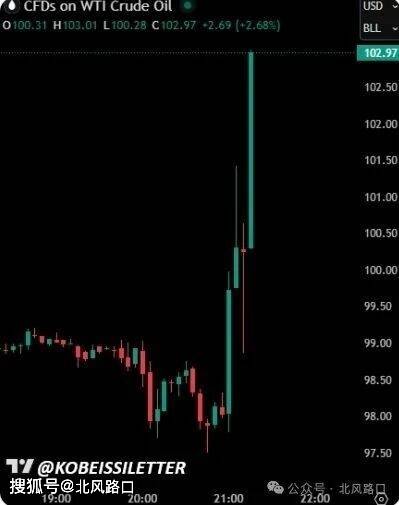 在特朗普威胁要打击伊朗发电厂、石油设施后,油价迅速飙升至每桶103美元以上,市场对讲话实时做出反应。
