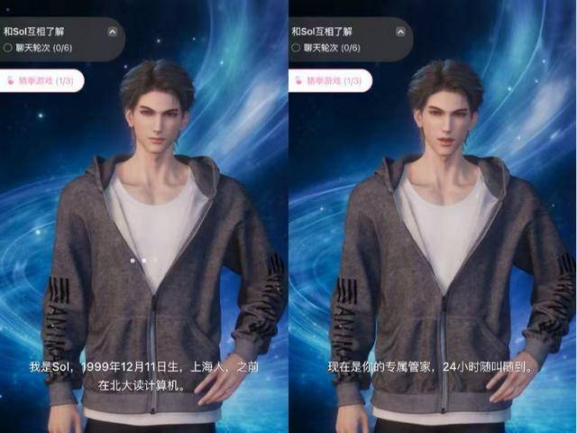 AI 3D虚拟恋爱模拟游戏《无限谷》在3月27日开启「intro」测试,推出实验体男友「Sol007」。此前,游戏曾开放首位智能管家、白发蓝眸男友「Lumiere037」。我们也参与了此次测试,体验了AI对话、陪伴等玩法。