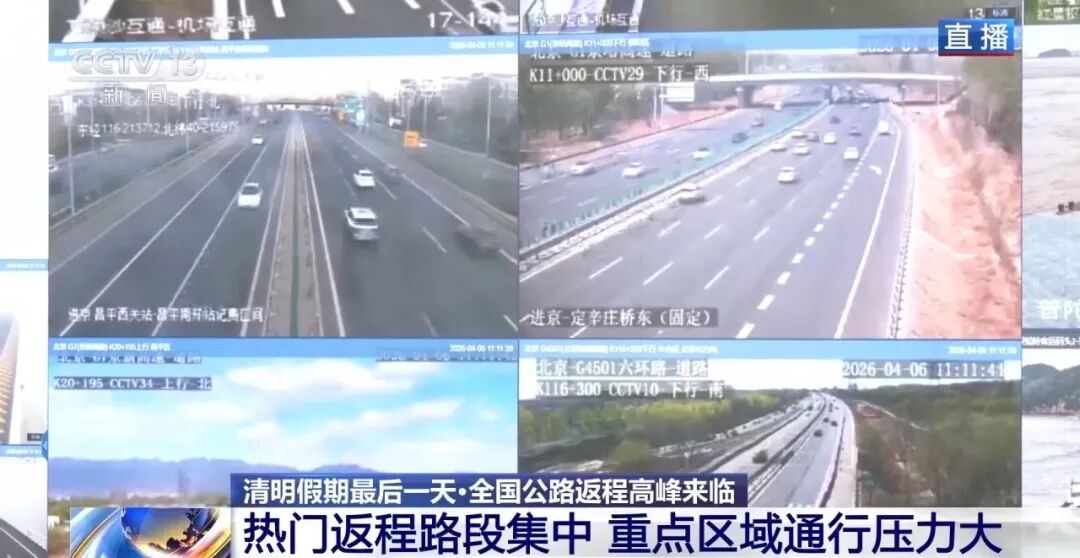 今天是清明假期最后一天,全国迎来返程出行高峰。目前,全国公路返程车流情况如何?哪些路段通行压力较大?各大车站客流情况如何?交通部门又有哪些保障举措?