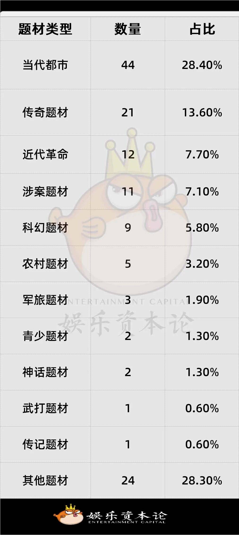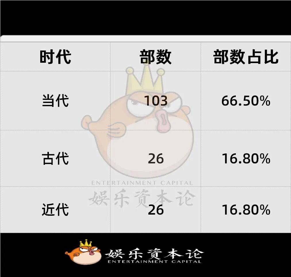 在题材方面,当代题材有93部,占比62%,现代都市、悬疑、科幻题材成为主流,现实主义创作持续深化。古代题材28部,占比18.7%,控量政策持续生效,以古代传奇为主。短剧以及季播剧共29部,占比19.3%,平台与制作公司加码中短剧集,降本增效明显。网络故事片占比36.7%,这一板块异常活跃,成为中小成本试错的主要阵地。
