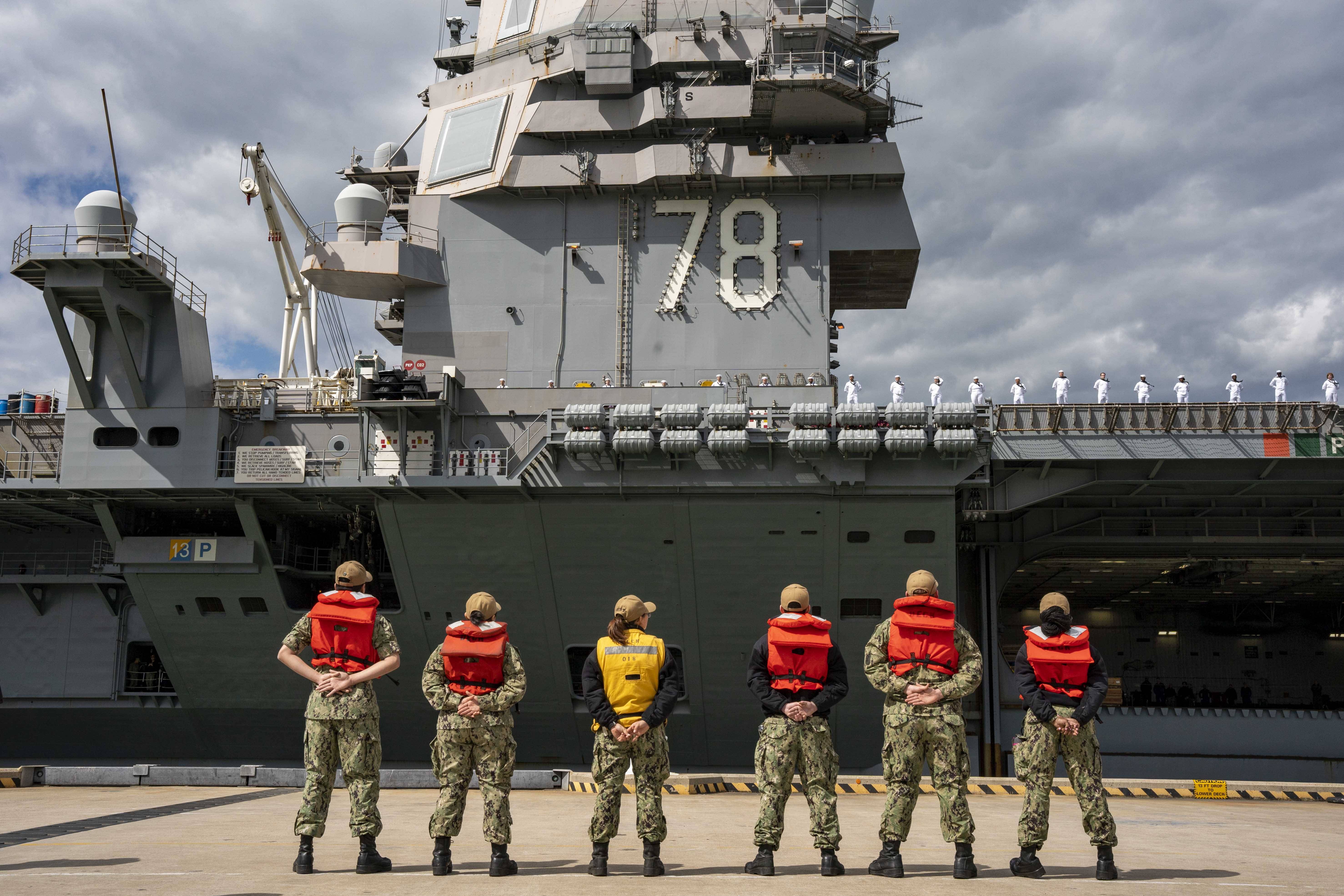 就说美国航母上的E-2D、EA-18G预警机,那可都不是摆设,还有F-35C隐形战机持续巡逻;外加组成航母战斗群的其他船舰,也都带着宙斯盾系统,能同时追踪和锁定数百个空中目标,然后发射拦截导弹击毁来袭的导弹或无人机,相当于在外围撑起了一张庞大的防空网。