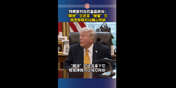 特朗普当地时间3月16日在白宫表示,自己期待“有幸拿下古巴”,“深信这份荣誉属于我”,并扬言自己对古巴可以“为所欲为”视频截图