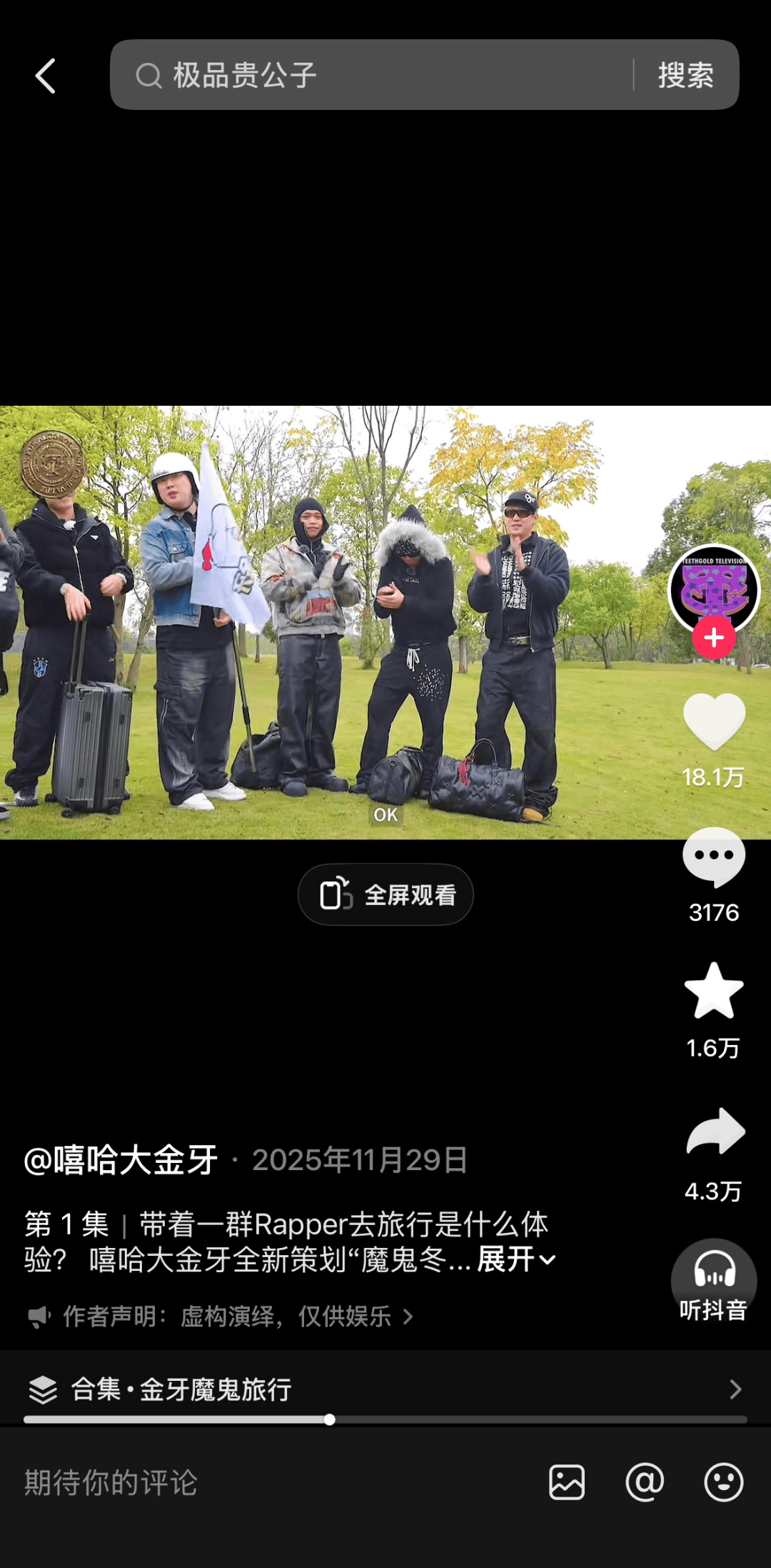 《魔鬼冬游记》只是起点,@嘻哈大金牙的内容探索仍在继续。“最重要的还是消除观众对rapper的刻板印象,让大家看到立体真实的rapper;其次希望与更多艺人、博主联动,把内容做出圈;再就是期望有更多商业机会。”