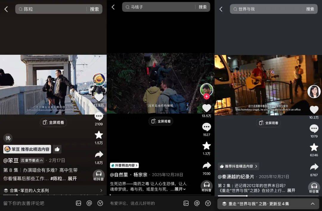 这些作品不限于时长、不拘泥于形式,却凭借扎实的内核,在抖音站内收获几十万的点赞、上万的评论,被网友们追更催更。