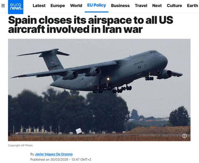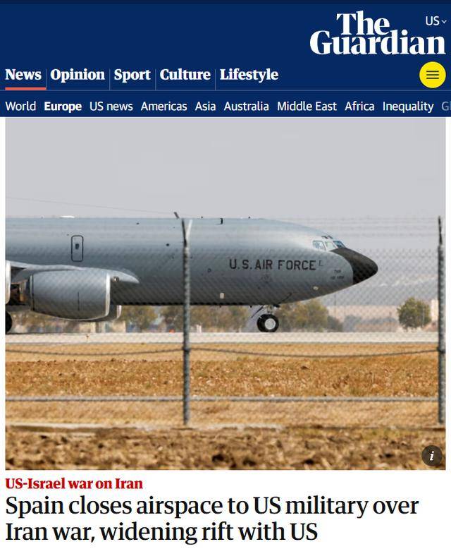 英国《卫报》30日的报道认为,西班牙加大了对美以对伊朗战争的反对力度,对参与袭击的美国军机关闭领空,突显了西班牙作为欧洲主要批评国的立场。